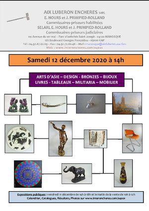 OBJETS D’ART : Maquette de la galère Réale, vases Médicis d’Anduze, coffret en émaux cloisonnés RIFFATERRE, miroir russe et santons napolitains XIXème s., porte torchère « au nubien » st. Louis XV, pendule signée RAINGO, garnitures de cheminées, miroirs et baromètre st. Louis XV-XVI, lustres à pampilles, tapis et tapisserie, maillot de ZIDANE