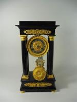 Pendule portique en marbre noir et bronze doré à décor de palmettes et cygnes, cadran...