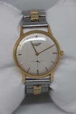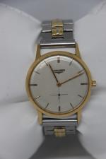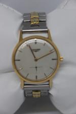 LONGINES Montre de poignet pour homme en or jaune, 18k, de forme ronde, cadran nacré, index et aiguilles bâton et secondes à 6h. (diamètre 35 mm - PB avec bracelet métal 53 gr)