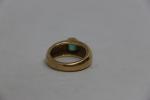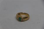 Bague jonc en or 18k sertissant une émeraude rectangulaire épaulée de diamants. 12.9 gr ER (TDD 57)