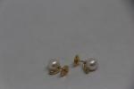 Paire de boucles d'oreilles monture or sertissant perles et diamants 2.8 g ER (diamètre perles 7.7 mm)