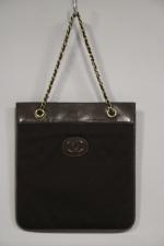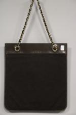 CHANEL: Sac à main en toile et cuir marron avec dustbag. H: 30 cm x 28 cm.