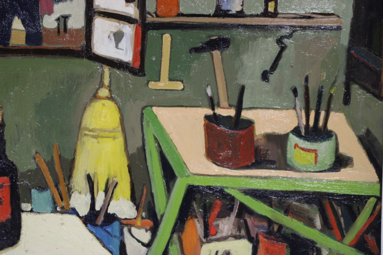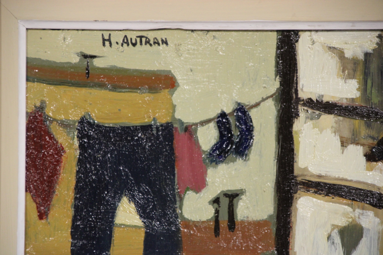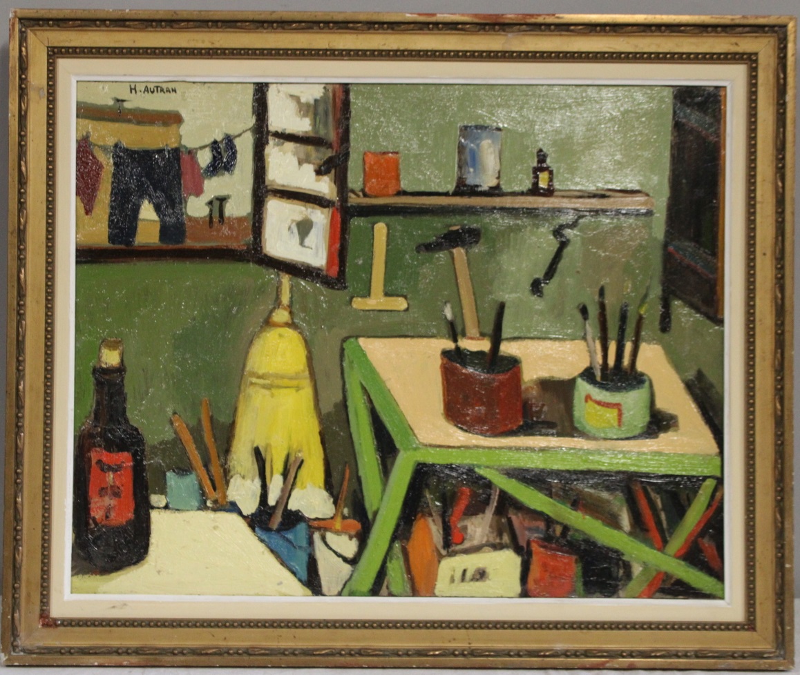 Henri AUTRAN (1926-2007) "Vue d'atelier", Huile sur panneau signée en haut à gauche. H: 50 cm x 63 cm.