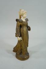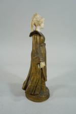BERNOUD Eugène (XIX-XXème s. ) : Jeune femme bretonne. statuette chryséléphantine en bronze doré et...