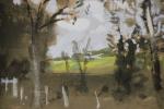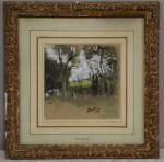 Pierre Eugène MONTEZIN (1874-1946): "Les bouleaux de la Villeneuve" Pastel réhaussé de gouache signé en bas à droite et titré au dos. H: 19 cm x 19 cm