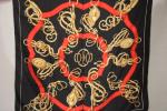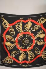 HERMES: "Les étriers sur fond noir" Carré en soie