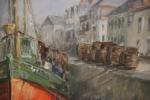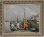 Gabriel AUGIZEAU (1894-1963): "Bateaux au port" Huile sur toile signée en bas à gauche. H: 50 cm x 61 cm