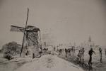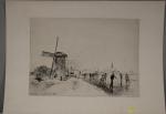 Johan-Barthold JONGKIND (1819-1891): "Moulin et canal" 1862. Pointe sèche. 3ème état sur quatre. H: 22 cm x 31 cm.