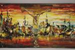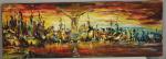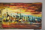 Gérard PAMBOUJIAN: (1941) "Le port de Marseille " Huile sur panneau. H: 50 cm x 148 cm.