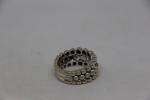 BOUCHERON: Bague trois rangs "grain de raisin" en or blanc 18k. alignant 5 diamants (totalisant 0.58 carats) 10.5 gr ER. avec boite et certificat. Taille 54