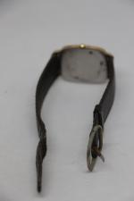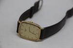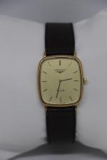 LONGINES: Montre bracelet en métal doré, mouvement à quartz, fond acier. Dans son écrin d'origine. (Rayures) diamètre 26 mm