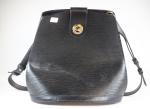 Louis VUITTON - Sac "Cluny" 29 cm en cuir épi noir, fermeture patte de serrage sur piton pivotant en métal doré, anse bandoulière réglable, intérieur en cuir retourné gris. (griffure).