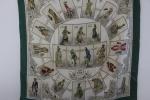 HERMES Paris: Carré de soie "La tenue de vénerie" par Ch HALLO. H: 87 x 87 cm