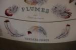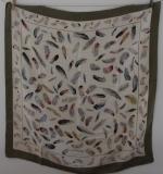 HERMES Paris: Carré de soie "Plumes" par Henri de LINARES (Tâches) sur fond crème et kaki. H: 88 x 88 cm