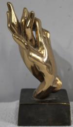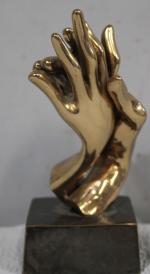 Yves LOHE: "Mains tendresse" Sujet en bronze massif, signé sur la terrasse, avec certificat. hauteur 18 cm