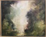 Pierre PATUREAU (1924-2020) : Rivière au milieu de la forêt. Huile sur toile, signée en bas à droite. Titrée et datée 2004 au dos. 81x100cm