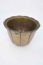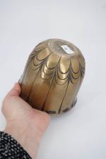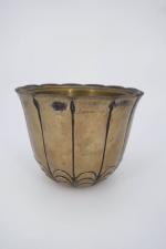 DUNAIME Georges (XIX-XXèmes.) Sculpteur - BARBEDIENNE Paris Fondeur  : Cache-pot en bronze patiné à décor stylisé Art déco, signé H : 11 cm