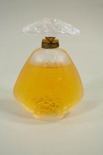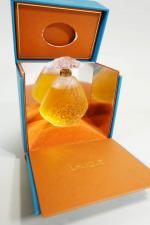 LALIQUE FRANCE : Flacon à parfum modèle Jasmin, de 60 ml en cristal incolore à décor pressé moulé, collection Edition de 1995, signé et numéroté C906 au talon, scellé et présenté dan son coffret d'origine (très légères taches et usures coffret)