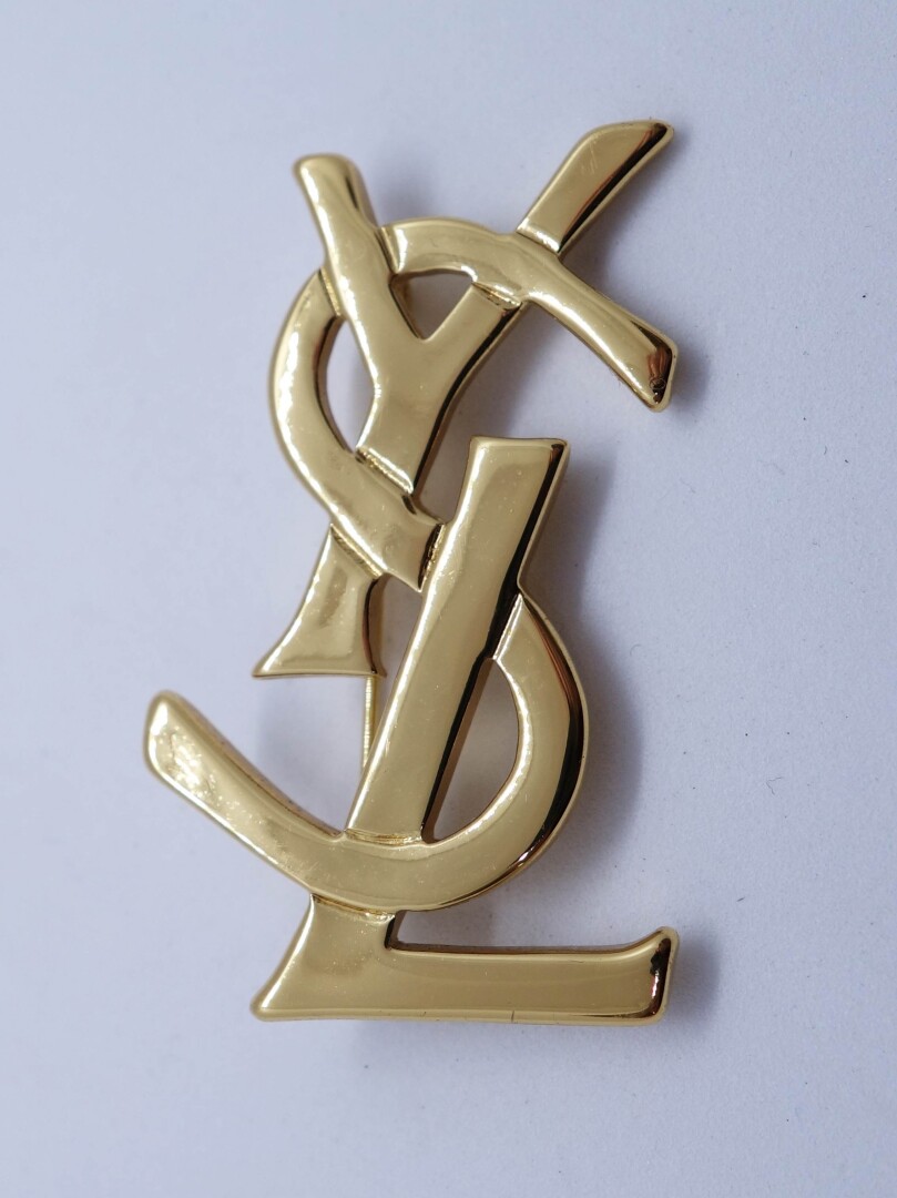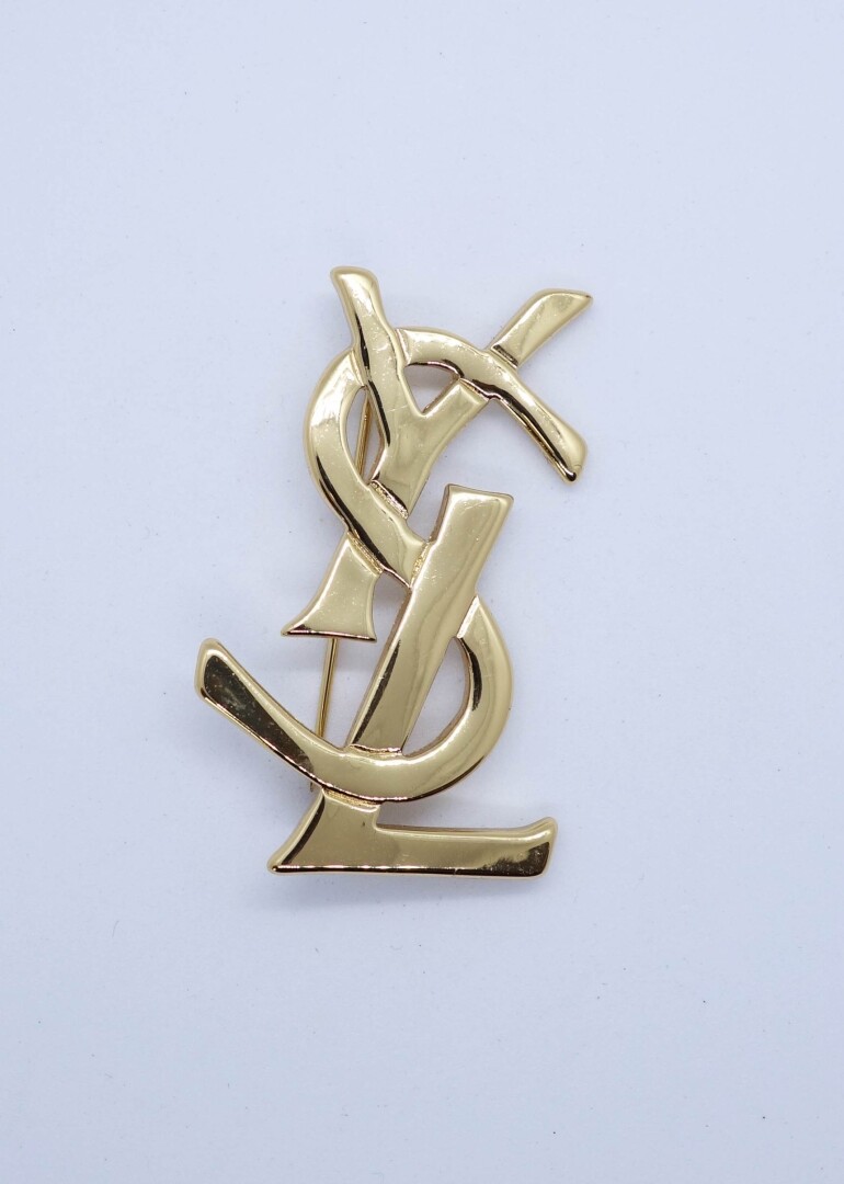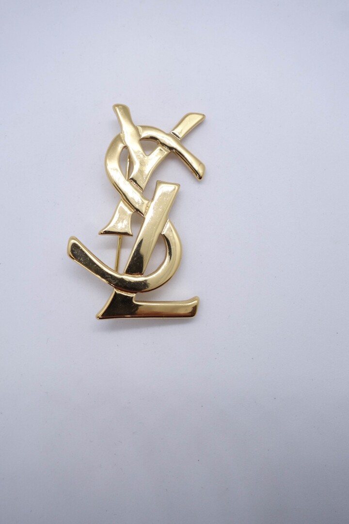 YVES SAINT-LAURENT (Made in france) : Broche en métal doré YSL. 5.5x3.2cm