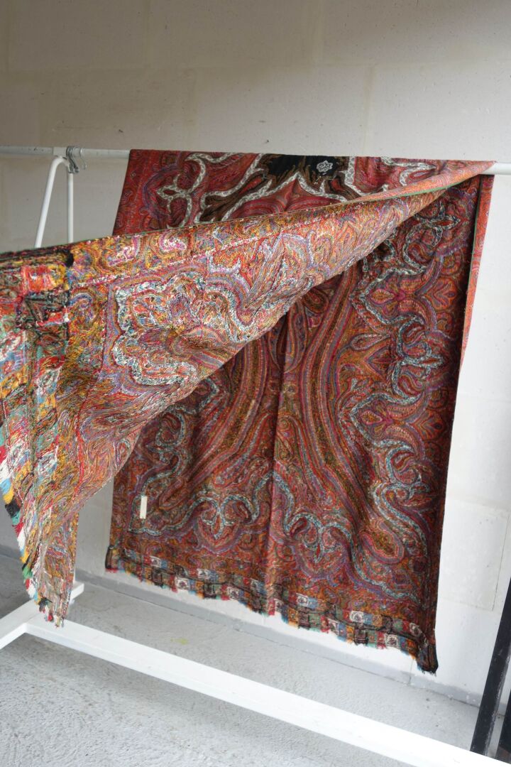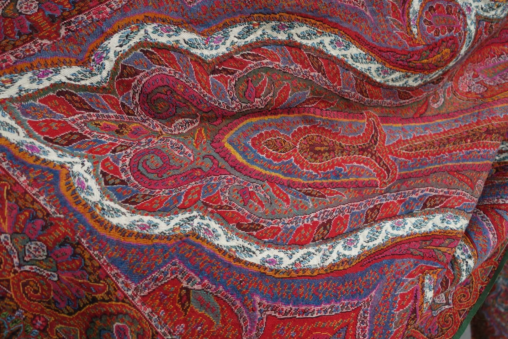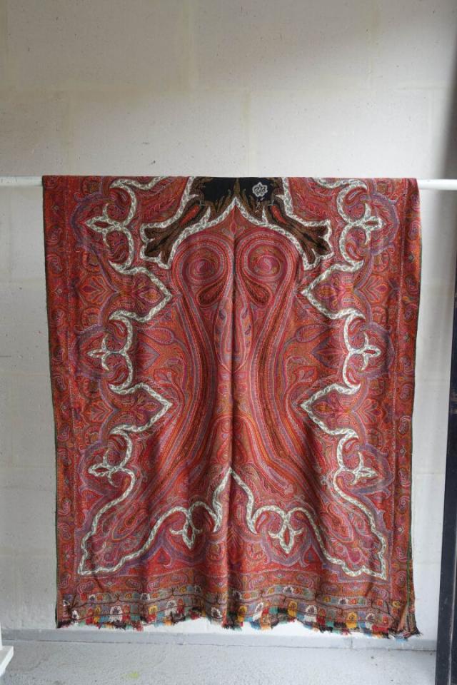 Châle brodé à décor cachemire, fin XIXème s. 290x120 cm (petites usures)