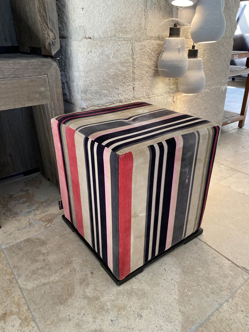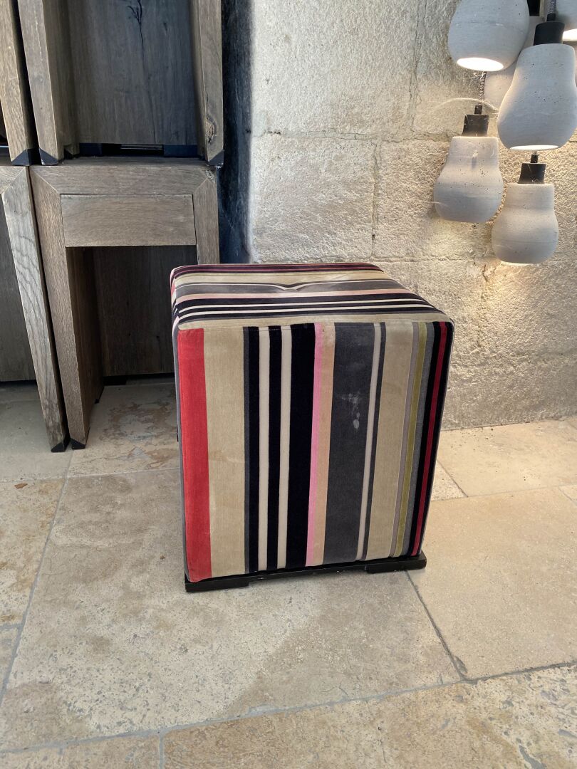2 poufs cube MAITRE EN SCENE, recouvert de velours bayadère,...
