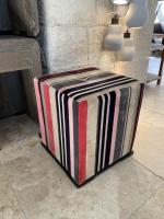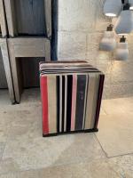 2 poufs cube MAITRE EN SCENE, recouvert de velours bayadère, 38x44cm