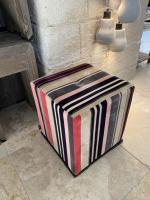 2 poufs cube MAITRE EN SCENE, recouvert de velours bayadère,...