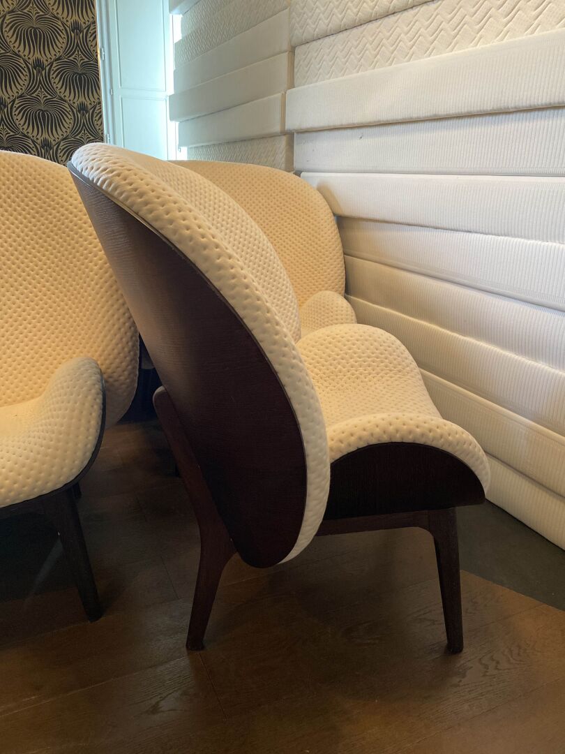 Fauteuil PERROUIN "Hug" crème avec coque en multipli garni de...