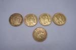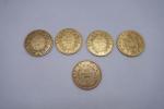 5 pièces de 20F or. Poids unitaire : 6.5g