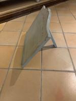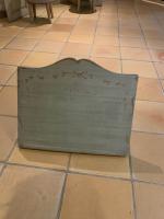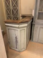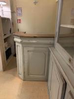 Comptoir en bois mouluré et laqué vert tilleul, 63x132x105 cm, avec porte menu assorti