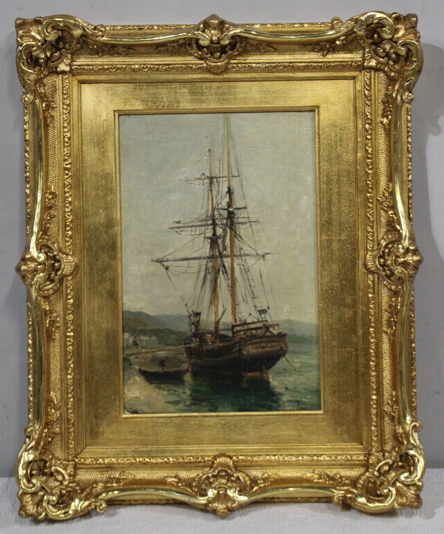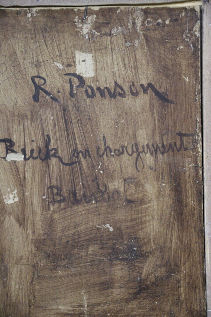 Raphaël Luc PONSON (1835-1904): "Brick en chargement à Bandol" Huile sur panneau signée en bas à gauche. Titrée et contresignée au dos. H: 39 x 26 cm