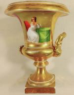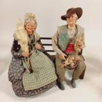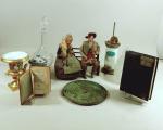 Lot brocante: Irrigateur EYGUISIER, petit vase médicis en porcelaine de Paris, disque asiatique , santon de Provence couple âgé sur un banc, livres et divers. (accidents)
