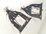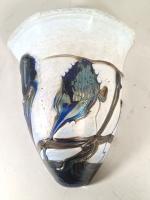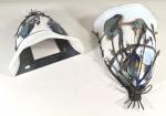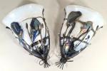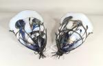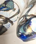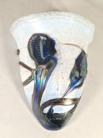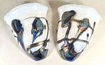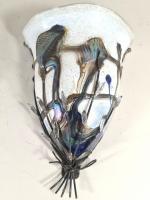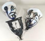 Paire d'appliques en métal à abat-jour en verre à décor jaspé polychrome, XXe siècle. H. 40 L. 30 P.14 cm (petits chocs et manques sur les abats-jours)