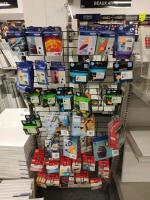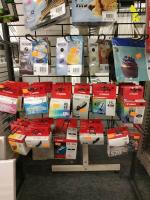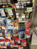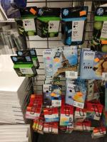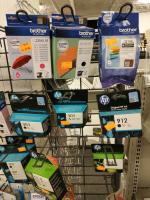 Présentoir métallique et son contenu de cartouches d'encre pour imprimantes BROTHER, HP, EPSON et compatibles