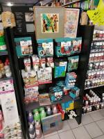 3 présentoirs et leur contenu de flacons de peinture et pochoirs PEBEO et divers