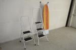 Lot de 2 escabeaux en acier laqué blanc, 3 marches ARTUB et 2 marches, + table à repasser CALOR