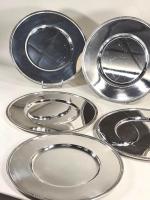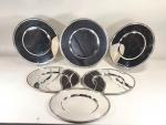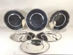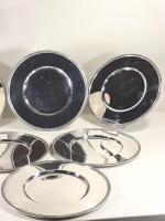 CHRISTOFLE : Suite de 6 plats circulaires en métal argenté à frise de palmettes. Style Louis XVI Diam. 30