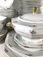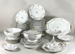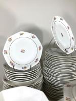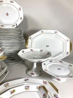 RAYNAUD Limoges : Partie de service en porcelaine à décor floral sur fond blanc de soixante-sep pièces comprenant :
