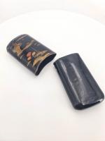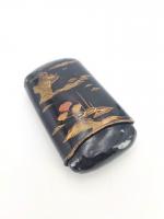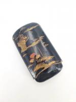 JAPON, début XXe s. : Boîte à cigare en laque décor de fleurs et paysage H. 12 cm L. 7 cm (petits sauts de laque)