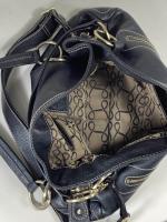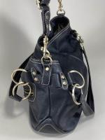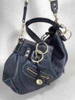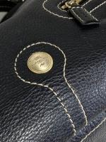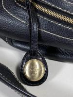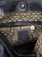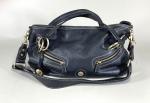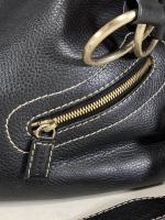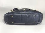 LANCEL : Sac en cuir grainé noir porté épaule à double anses, doublure intérieure beige et brune à décor monogramme. H. 24 cm L. 45 cm