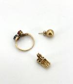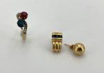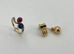 On y joint deux boucles d'oreilles orphelines en or 750 millièmes : boule et demi jonc serti de calibrés bleus. 2.21g