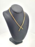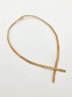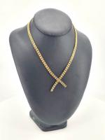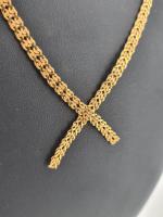 Collier en or jaune 750 mill. à deux brins entrecroisés à mailles articulées aplaties. Poids : 23.10g Longueur 40.5cm ER