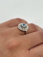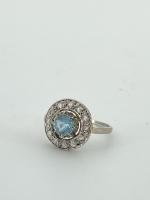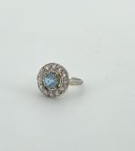 Bague en platine ornée d'une aigue-marine entourée par de petits diamants. Epoque Art Déco Poids brut : 4,3 g