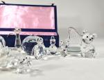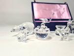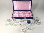 On y joint un lot de sujets en verre taillé dans le goût de Swarovski (accidents)