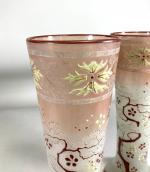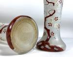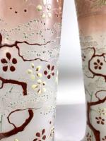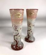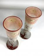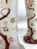 LEGRAS François-Théodore (1839-1916) : Paire de vases "Printemps" en verre blanc nuancé rose et à décor émaillé de bonsaï et fleurs, non signé, H. 36 cm