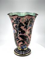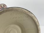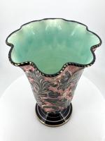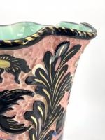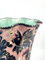 CERDAZUR MONACO : Vase aux poissons en faïence polychrome, le fond rose craquelé, l'intérieur émaillé bleu H. 30 cm.