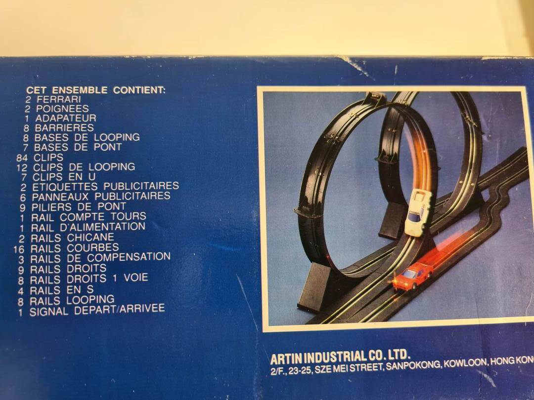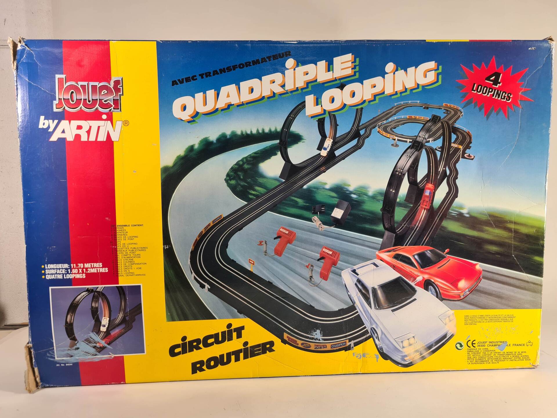 JOUEF BY ARTIN: Coffret circuit quadruple looping, circuit routier. Longueur 11.7m, surface 1.60x1.20m, 4 loopings. BEB2