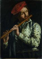 ECOLE ITALIENNE du XVIIème siècle. "Jeune homme jouant du luth", toile. 105 x 74,5 cm (restaurations)
