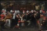 ECOLE ITALIENNE du XVIIIème siècle, d'après Maître Caravagesque. "Le reniement de Saint Pierre ?", plume...