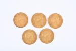 MONNAIES d'OR : 5 x 20 FF RF, 1909.